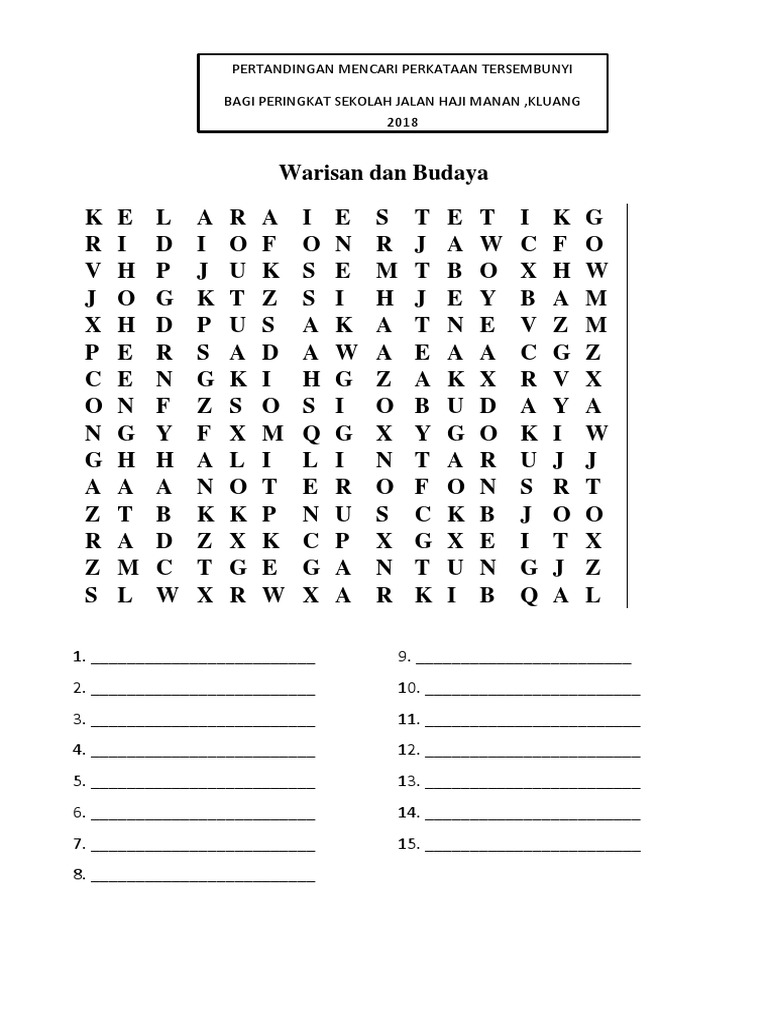 Pertandingan Mencari Perkataan Tersembunyi Contoh Tahun 2017