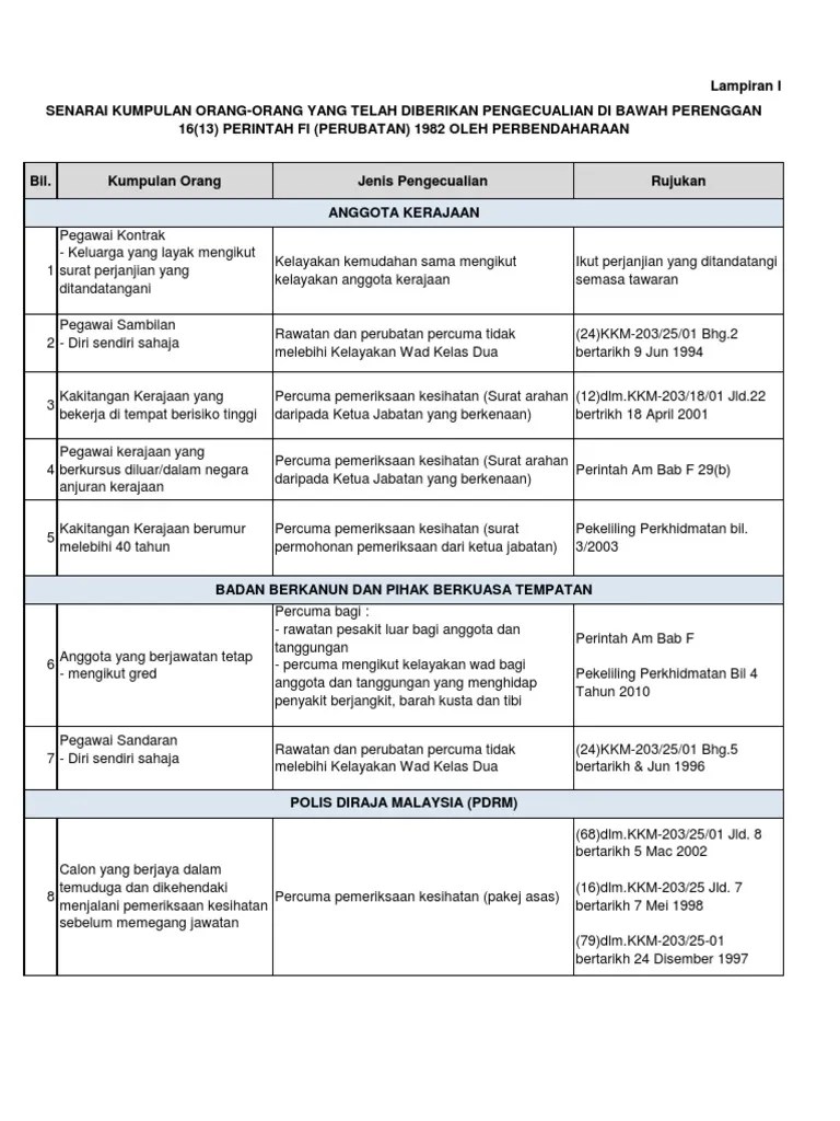Untuk tujuan pemeriksaan pemohon hendaklah membawa. Pekeliling Perkhidmatan ini bertujuan menjelaskan syarat dan prosedur bagi pegawai perkhidmatan awam mendapatkan kemudahan pemeriksaan kesihatan supaya pemberian kemudahan ini dapat dilaksanakan dengan lebih teratur berkesan dan seragam. Dan 3 3 ahli keluarga seperti mengikut peruntukan perintah am 1 iii bab f tahun 1974 4 0 syarat syarat dan peraturan peraturan 4 1 mendapat rawatan di hospital klinik kerajaan.